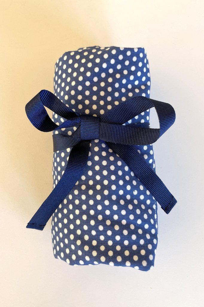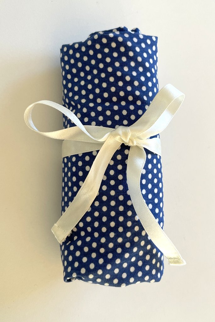 FÄRG: Blå med vita prickar, kan fås med olika bandfärger, välj den du önskar i menyn