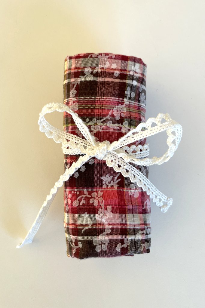 FÄRG: Rutig i rött, vitt och brunt. Kan fås med olika bandfärger, välj den du önskar i menyn