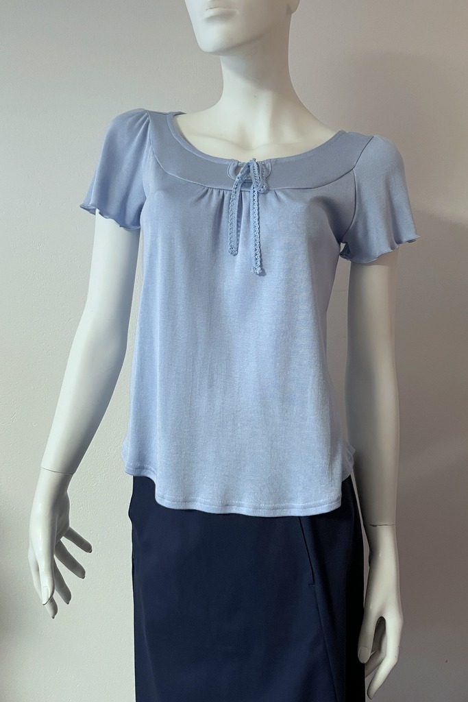Mjuk och skön trikåblus med fina detaljer och lyster i tyget.