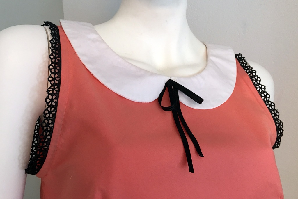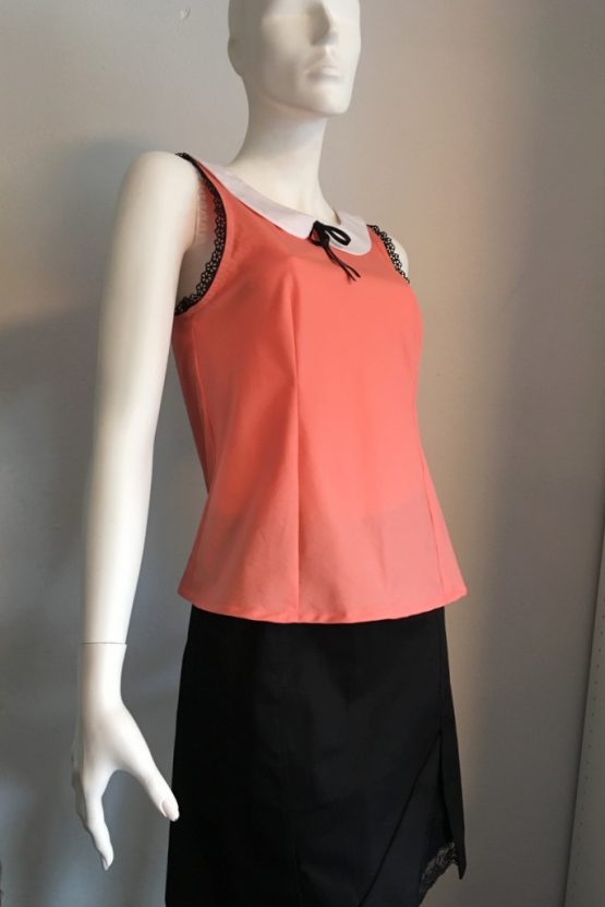 Härlig ärmlös bomullsblus med rundad krage och fina spetsdetaljer.