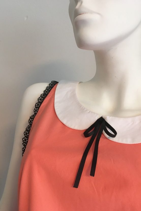 Detta plagg är skapat i ateljén och ingår i miljösmarta projektet ”Redesign by Dressbakery”, som innebär att gamla, oanvända plagg och material tas tillvara på och sys om till nya modeller.
